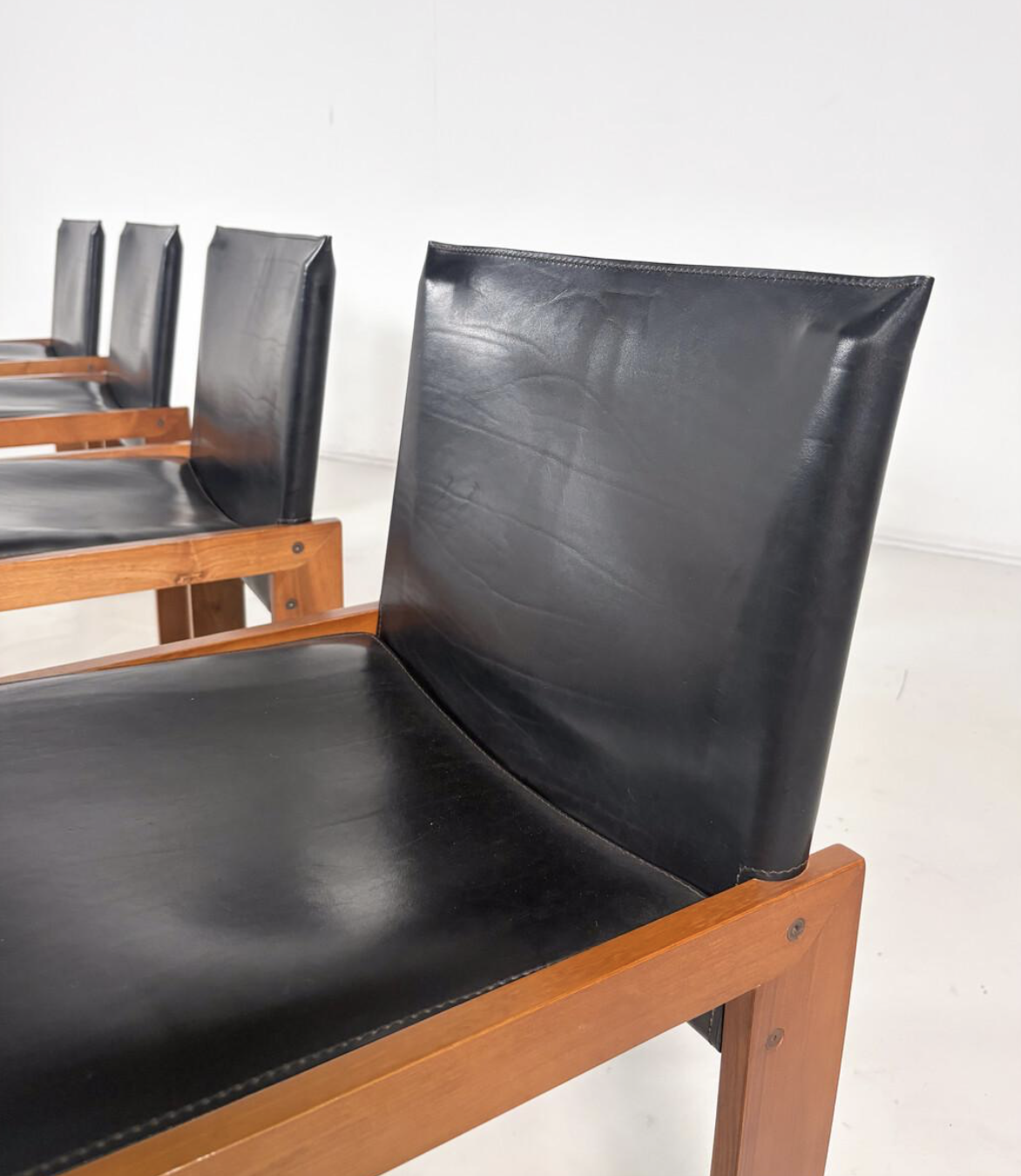 Mid-Century Modern Set of 4 Chairs in the Style of Scarpa, 1970s