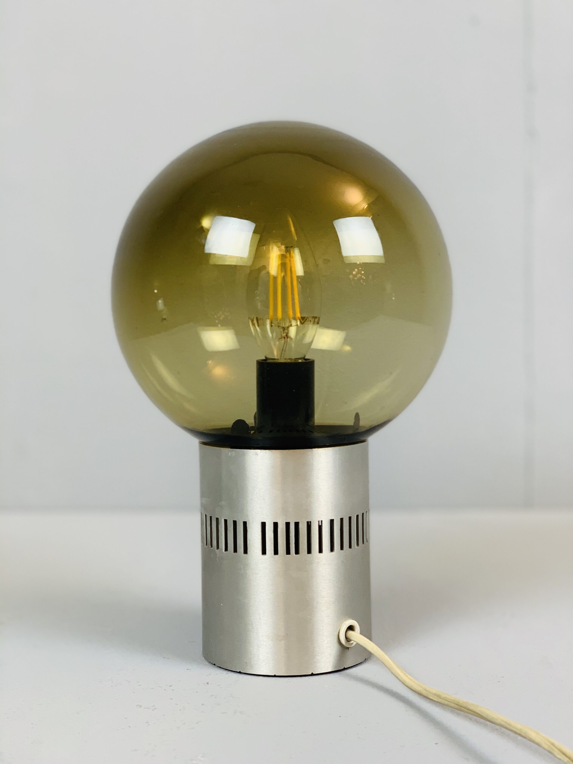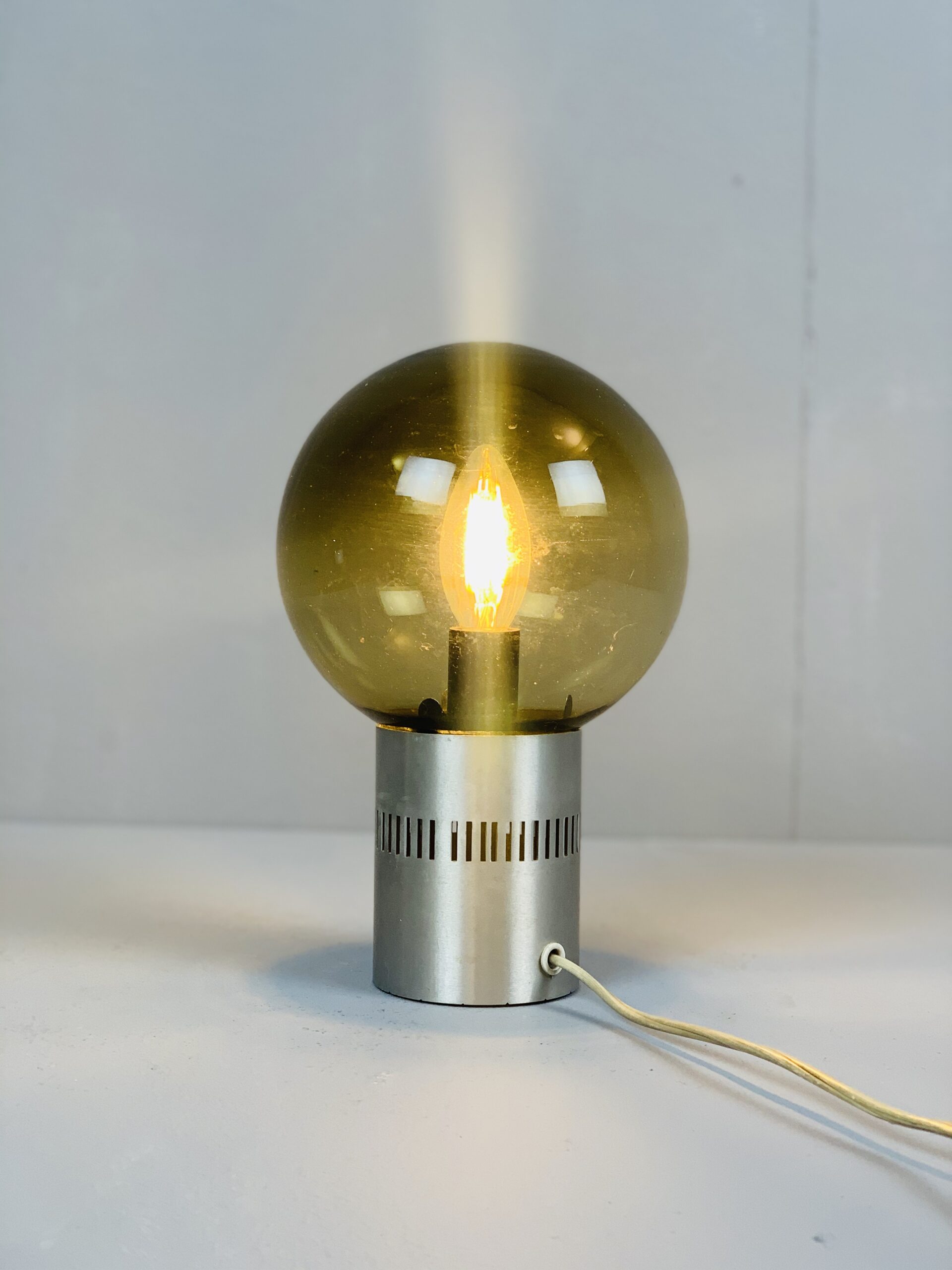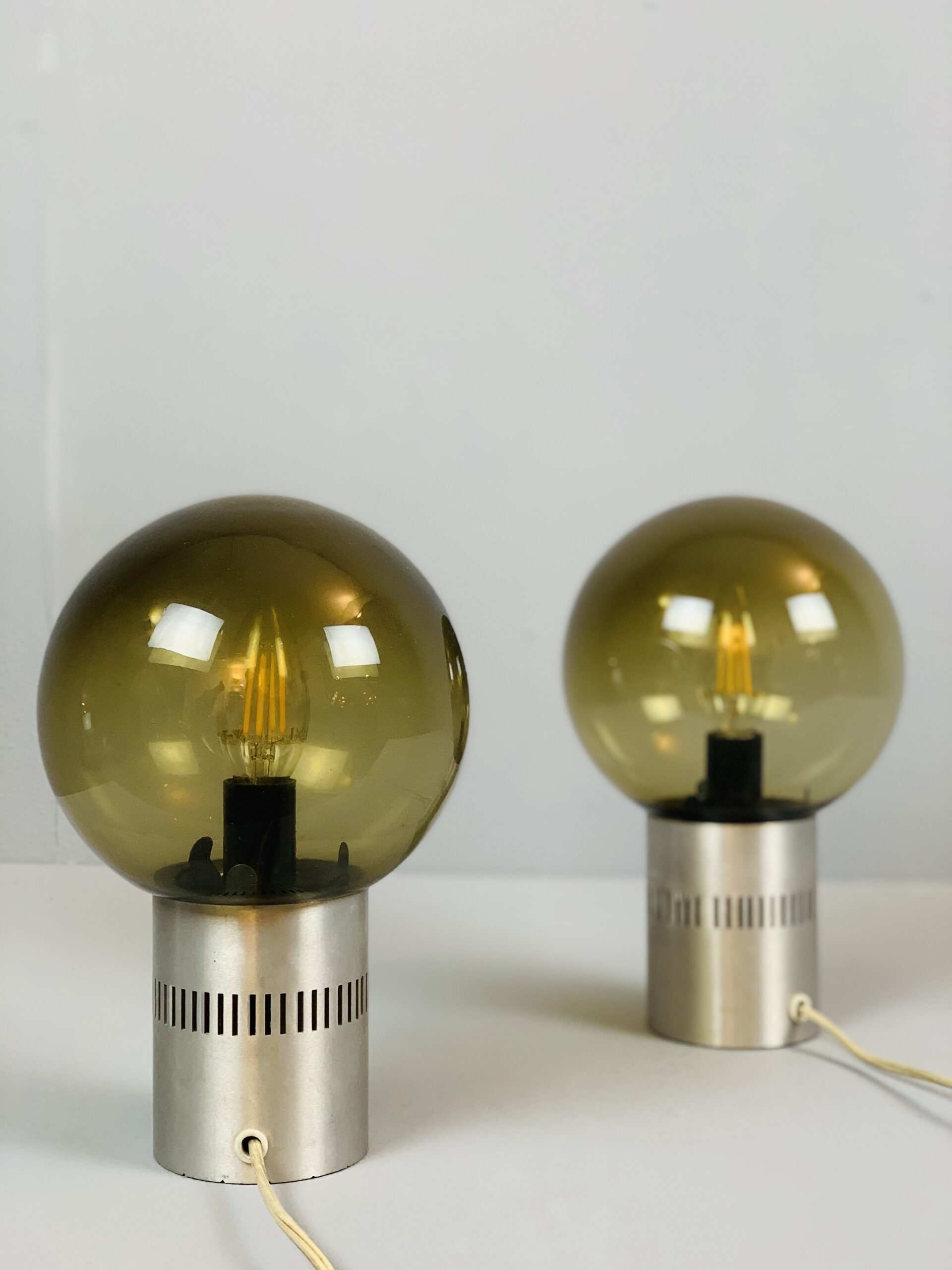 Pair of Mid Century Candle Lamps in Chrome and Smoked Glass